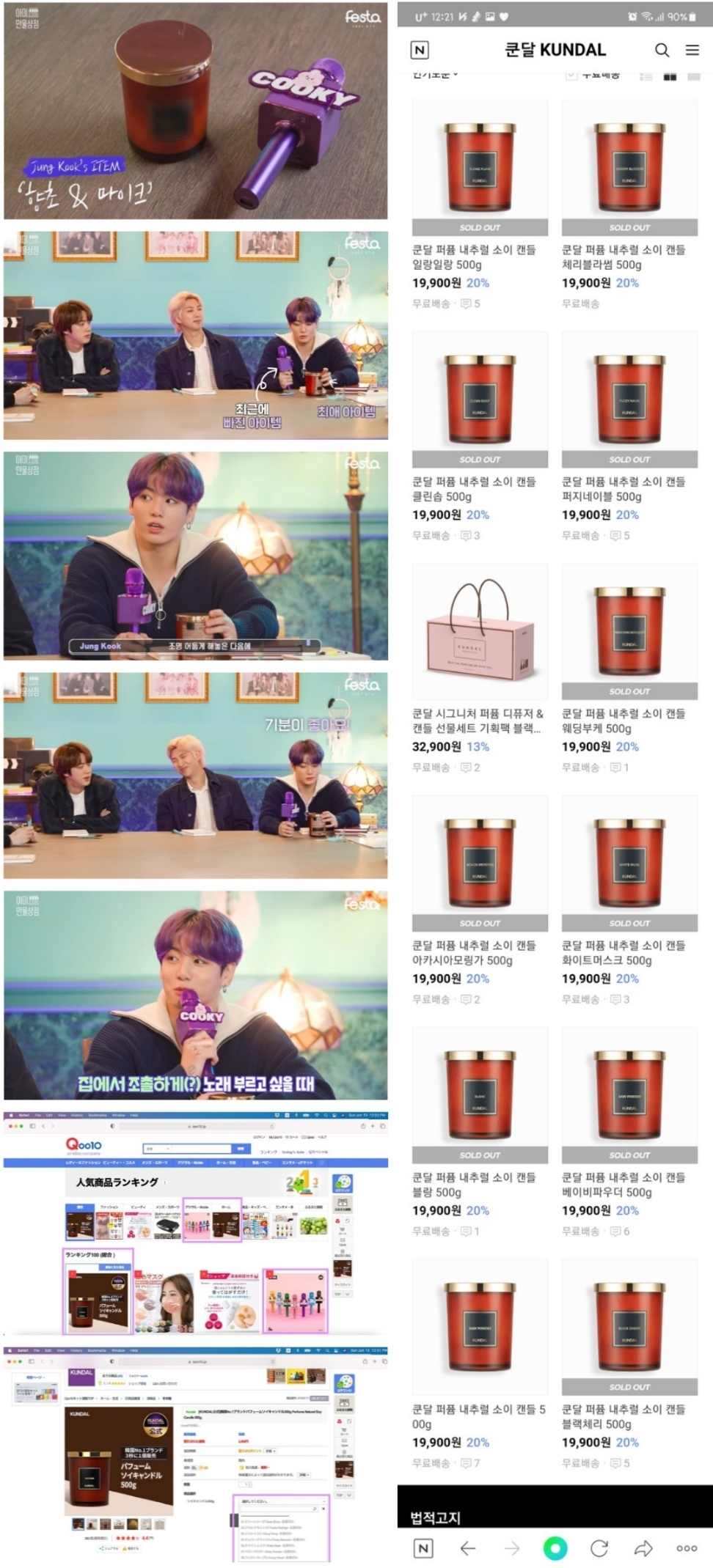 정국이 향초와 함께 선보인 BT21 쿠키(COOKY) 마이크도 큐텐의 베스트셀러 랭킹 4위에 랭크됐다.