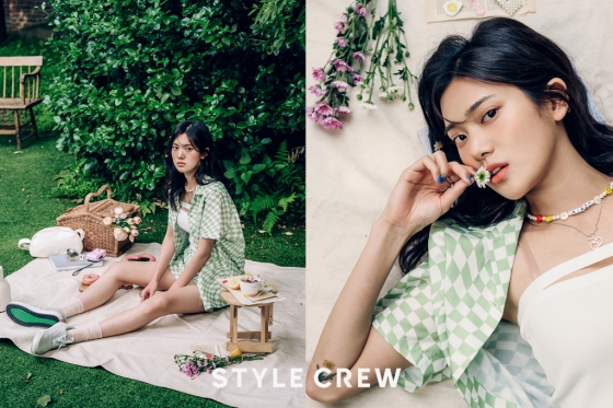 민서는 키르시 21SS 신상 컬렉션으로 연출한 7가지 여름 캐주얼을 능숙하게 소화하며 각각의 의상을 더욱 돋보이게 만들었다.