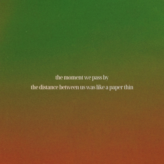 해당 이미지에는 "the moment we pass by the distance between us was like a paper thin(우리가 가까이 스친 이 순간 서로의 거리는 단 0.01cm 였다)"라는 감성적인 문구가 담겼다. 깔끔하면서도 차분한 무드가 돋보여 쏠의 신곡에 대한 궁금증을 유발한다.