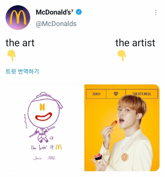 방탄소년단이 글로벌 모델로 활동하고 있는 맥도날드는 지난 15일 공식 트위터 계정을 통해 멤버들이 직접 그린 손그림을 공개했다.