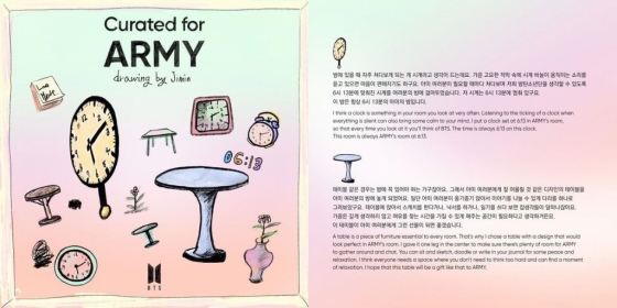 지민은 이전부터 아이돌로서의 뛰어난 실력만큼 남다른 미적 감각으로 방탄소년단 공식 트위터를 통해 로즈데이, 생일, 데뷔 기념일 등 특별한 날을 기념한 그림을 선보여 팬들에게 로맨틱한 선물을 선사해 '금손 지민'이라고 불려왔다.