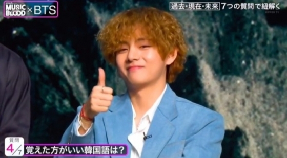뷔의 머리스타일에 대해 진행자가 "전 세계적으로 화제가 됐다. 너무 잘 어울린다"고 말하자 뷔는 같은 헤어스타일을 권유하며 약속을 받아 웃음을 주었다.