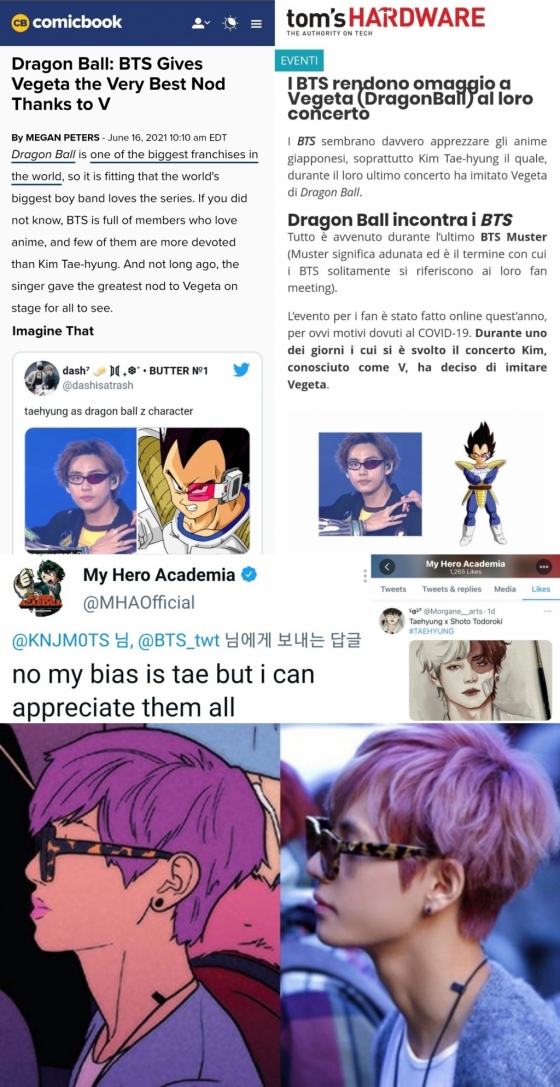 코믹북외에 영어, 불어, 독일어 등 다양한 언어로 발간되는 이탈리아 테크놀로지 전문매체 'Tom's Hardware Italia'도 "뷔의 행동은 드래곤볼 캐릭터 중 하나인 베지터에 대한 최고의 찬사"라는 기사에 "선글라스가 깨진 것을 계획된 것은 아니었지만 그 효과는 상상 이상이었다. 선글라스는 깨어졌지만 뷔의 모습은 흠 잡을 데 없었다"고 덧붙였다.