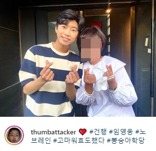 정우용도 자신의 인스타그램에 효자 인증샷을 공개했다. 아들인 자신이 아닌 임영웅이 등장하는 게 눈길을 끈다. 정우용은 자신의 어머니와 임영웅이 함께 찍은 사진을 공개하며"고마워효도했다"는 글로 임영웅에게 감사를 나타냈다.