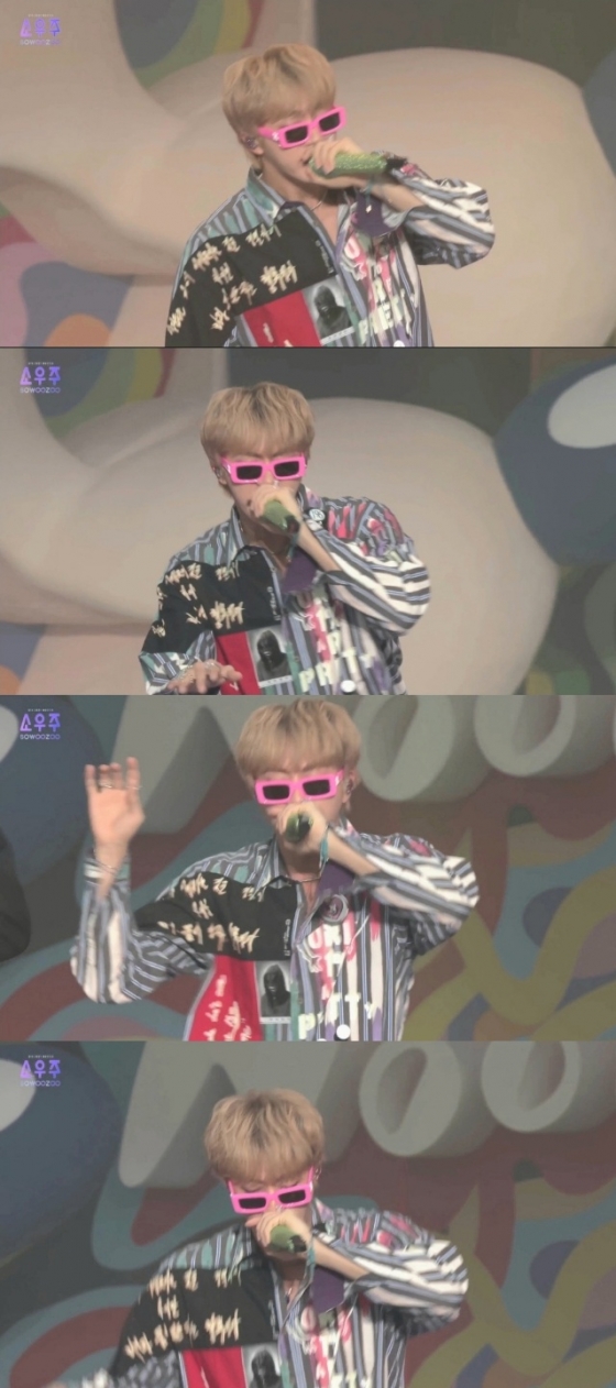스포츠카를 타고 분홍색 선글라스를 쓴 모습으로 등장한 진은 환상적인 호흡 조절과 완벽한 딕션으로 빠른 랩을 소화해 시선을 모았다.