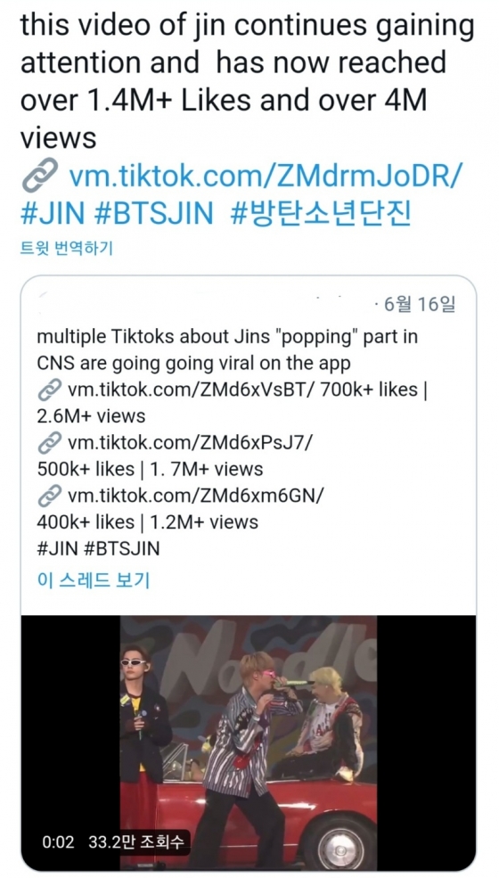 공연 직후부터 지금까지 진의 사랑스러운 '퍼피퍼피' 파트가 틱톡에서 유행되고, 딜레이뷰 스트리밍후엔 대한민국 실시간 트렌드를 또 한번 장식하며 진에 대한 뜨거운 관심과 인기가 식지 않음을 증명하고 있다.