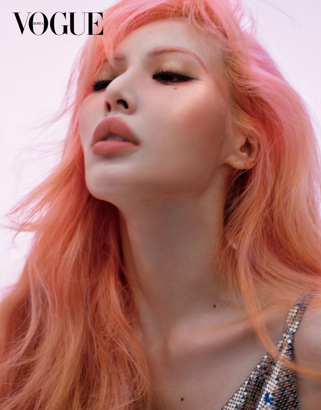 현아는 뉴트럴한 로즈 골드 빛 메이크업 룩과 핑크빛 헤어 컬러가 어우러진 몽환적이면서도 관능미 넘치는 매력을 과시했다.