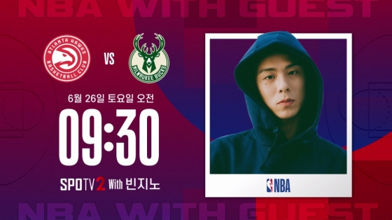 빈지노가 NBA 중계에서는 어떤 입담을 보여줄 수 있을지 관심이 집중된다. 빈지노는 이날 김명정 캐스터, 조현일 해설위원과 함께 이 경기 생중계에 함께 나선다.