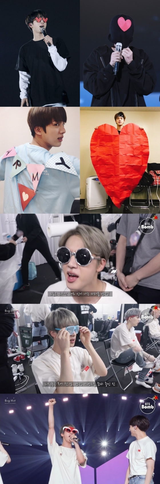 팬들을 기쁘게 해주기 위해 시작한 이 하트 이벤트는 마이크와 같이 아무도 예상치 못한 곳에서 하트 모양의 종이를 꺼내 보여주며, 팬들에게 자신의 사랑을 고백하는 진의 사랑스러운 작은 이벤트이다. 진은 스탭들과 함께 이벤트에 사용할 하트를 직접 만들었으며 다양한 아이디어를 내서 팬들과 스탭, 그리고 멤버들을 즐겁게 만들었다.