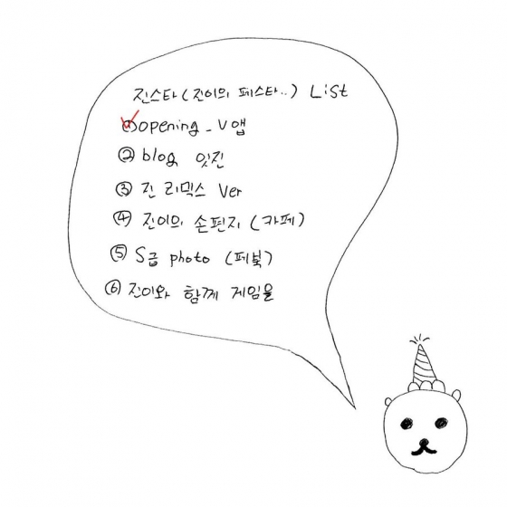 방탄소년단 멤버들의 생일에는 재미있는 사진이 올라온다. 일명 '엽사'인데, 공식 사진으로는 잘 나오지 않는 귀엽고 사랑스러운 사진들을 멤버들이 올려주는 것이며 이 또한 진이 처음으로 시작한 방탄소년단만의 문화이기도 하다. 뿐만 아니라 진은 음성메세지를 올리기도 하고 손글씨로 축하메세지를 올리기도 하는 등 다양하고도 독특한 발상으로 팬들에게 즐거움을 선사했다. 또한 자신의 생일에는 '진스타'를 고안하여 매년 새로운 콘텐츠를 가지고 오기도 했다.