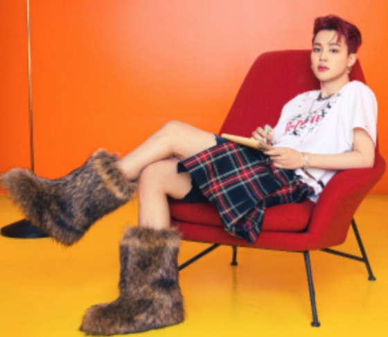 지난 6월 28일 0시에 공개된 'Butter' 싱글 앨범 콘셉트 포토에서 지민은 아이코닉한 레드 헤어에 명품 브랜드 셀린느의 페이크 퍼 부츠, 스코틀랜드 전통 복장인 킬트를 착용, 전 세계 팬들을 충격에 빠트리며 일본 유명인 랭킹 1위와 전세계 실시간 트렌드를 일으키며 티셔츠 품절등 폭발적인 화제를 모았다.