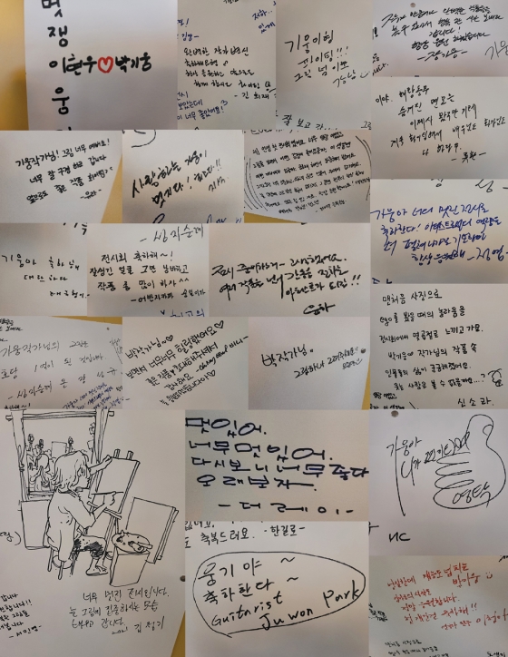 박기웅 작가는 "정말 많은 지인들이 방문해 주셔서 몸 둘 바를 모르겠고 특히 친한 화가친구들의 신랄한 조언과 김정기 작가님이 즉석에서 방명록에 라이브 드로잉으로 작업하는 저를 그려 주셔서 감사했다. 오랫동안 혼자 꿈꾸며 노력해 온 혼자만의 고통이 따뜻하게 풀리는 느낌이었고, 앞으로도 더욱 분발하여 좋은 작품으로 대중들에게 제가 느낀 감정을 전달하도록 노력하겠다"고 전했다.