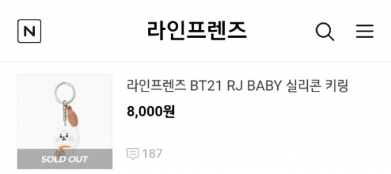 방탄소년단(BTS) 진의 의도하지않은 가방 공개에 라인프렌즈 BT21캐릭터 알제이, 이번에는 'RJ BABY 실리콘 키링'이 품절되며 뜨거운 인기를 입증했다.