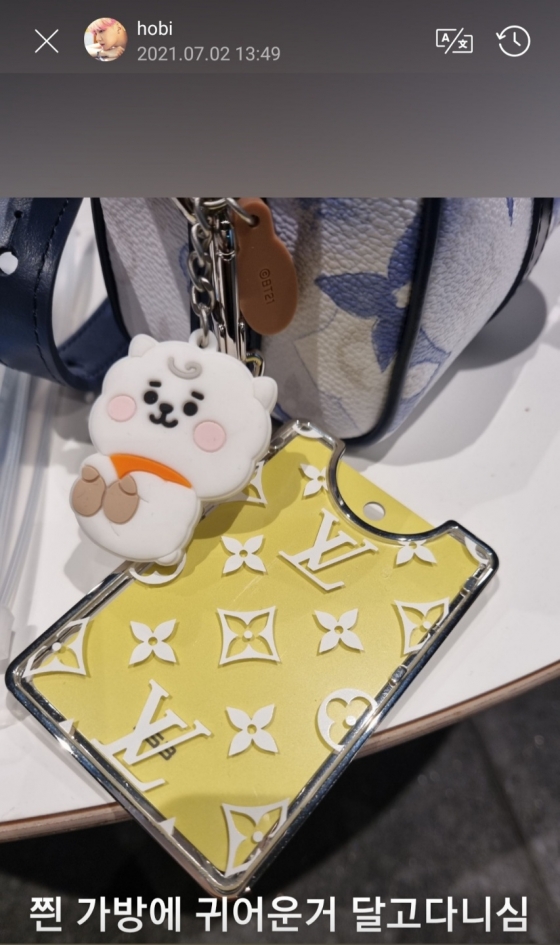 지난 2일 방탄소년단의 팬 커뮤니티 플랫폼 위버스(Weverse)에 한 장의 사진이 게시됐다. 제이홉은 '쯴 가방에 귀여운 거 달고 다니심'이라는 글과 함께 루이 비통 가방과 알제이 키링이 있는 모먼트를 게재했다. 이에 사진 속 가방의 주인공이 진임을 알 수 있어 팬들을 미소짓게 했다.