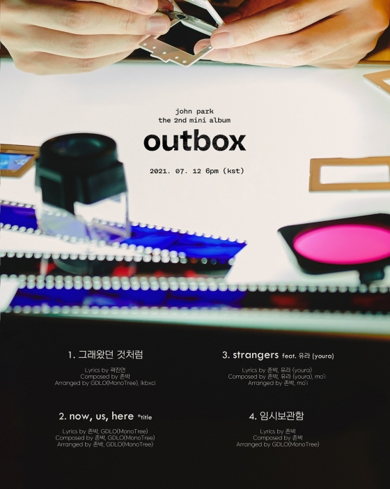 존박이 오는 12일 두 번째 미니 앨범 'outbox'를 발매한다. 이에 앞서 존박 소속사 뮤직팜은 지난 7일 공식 SNS 채널을 통해 'outbox'의 트랙리스트 이미지를 공개했다.