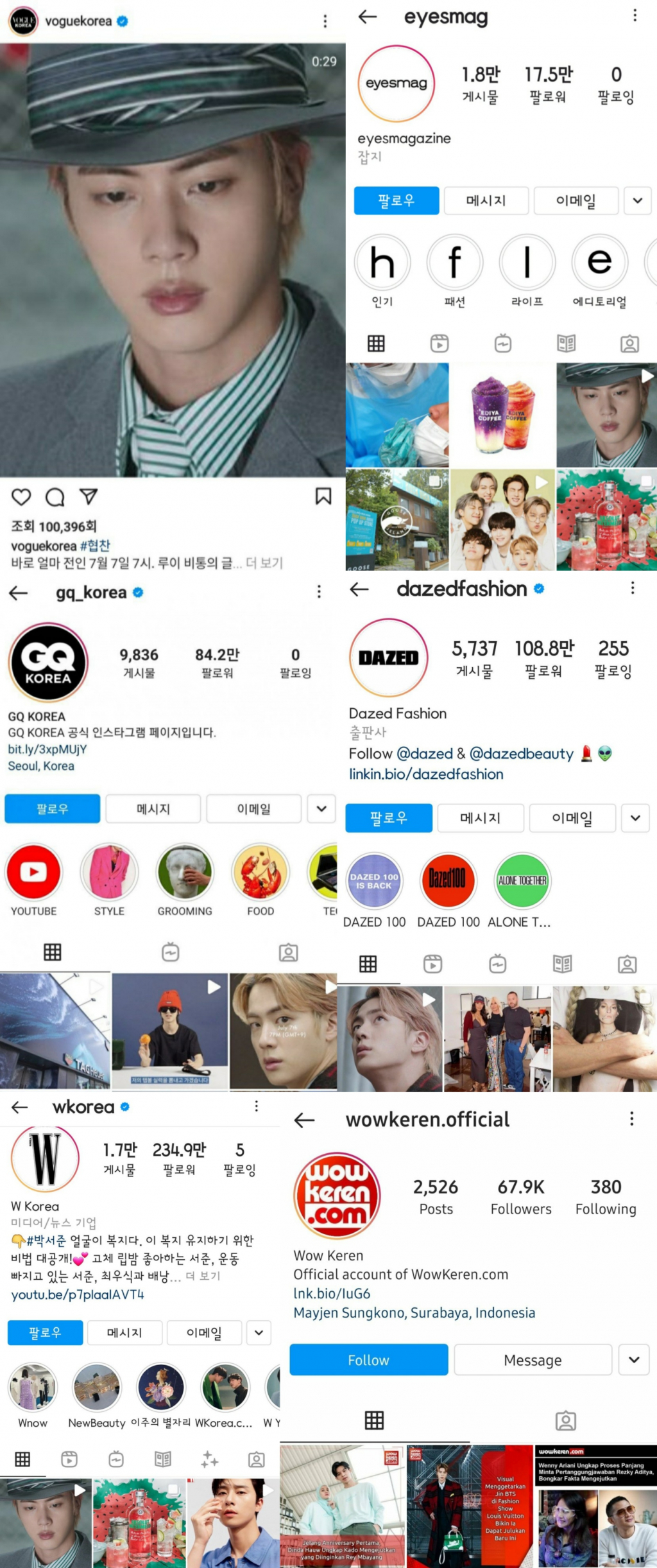 'Eyesmagazine', 'GQ korea', 'vogue', 'Dazed', 'W Korea'등에서는 진 파트 및 사진을 섬네일로 사용하여 쇼스토퍼로서의 진의 가치를 인정했다.
