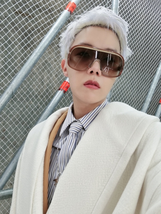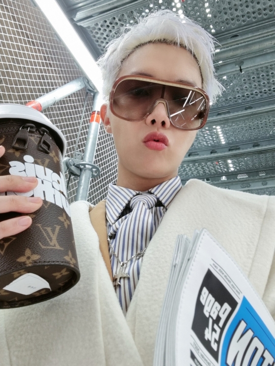 제이홉은 버질 아블로가 디자인한 의상을 착장하고 럭셔리 비주얼을 자랑했다. 제이홉이 이번 패션쇼를 맞아 선보인 화이트 헤어에 신비로운 분위기를 자아냈다.