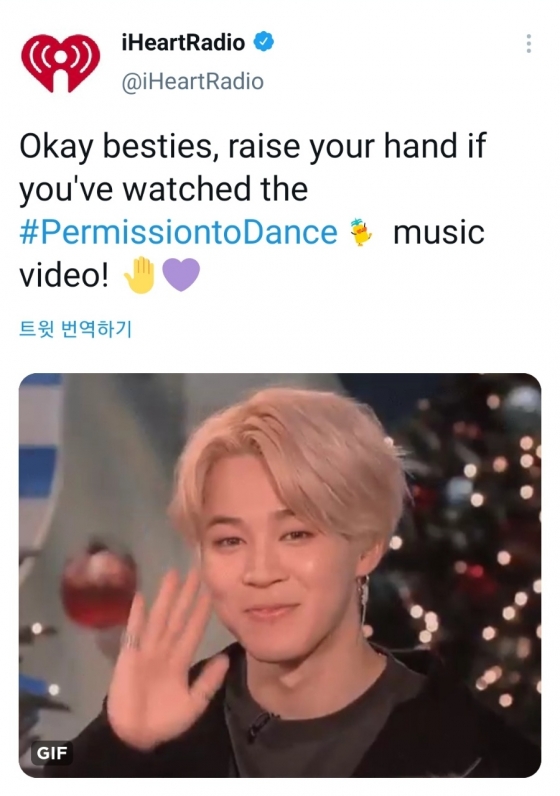 미국 아이하트라디오(iHeartRadio) 공식 계정은 '퍼미션 투 댄스' 발매 일인 지난 9일 "BTS의 '퍼미션 투 댄스' 뮤직비디오를 본 사람은 손을 들어달라"며 지민의 단독 이미지를 업로드, BTS 프론트맨 답게 현지에서 지민의 높은 인기와 인지도를 실감케 했다.
