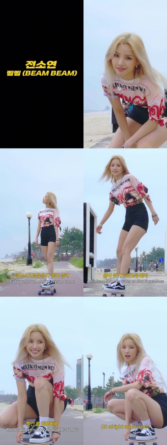 그룹 (여자)아이들 전소연이 신곡 '삠삠'(BEAM BEAM)의 리릭 비디오를 공개해 화제다.