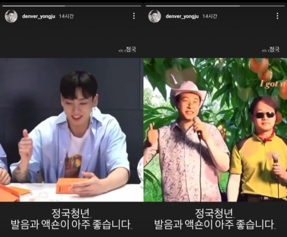 지난 13일 이용주는 자신의 인스타그램 스토리에 "정국 청년..발음과 액숀이 아주 좋습니다.."라는 글이 쓰여진 영상을 공개했다.