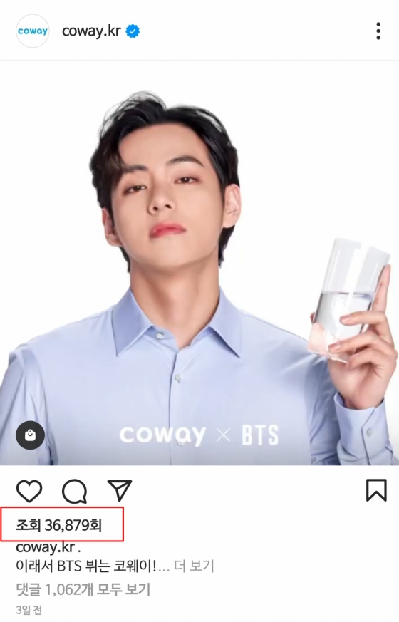 지난 15일 방탄소년단이 모델로 활동 중인 코웨이(COWAY)의 인스타그램 공식 계정에 각 멤버들의 광고 사진이 게재됐다.