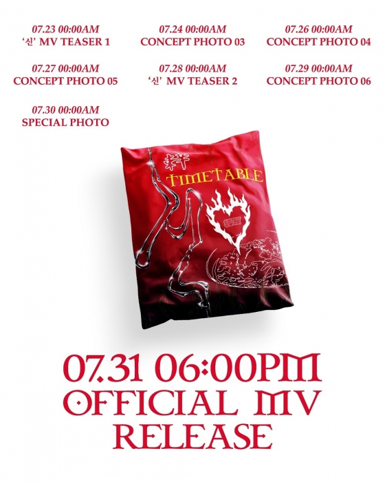 공개된 타임테이블에 따르면 오는 23일 뮤직비디오 1차 티저 영상을 시작으로 다양한 이미지로 구성된 콘셉트 포토를 순차적으로 공개하며 고조된 기대감에 부응할 예정이다. 이어 28일 뮤직비디어 2차 티저 영상, 30일 스페셜 포토, 31일 오후 6시 신곡 음원과 뮤직비디오 동시 발매 순으로 플랜을 이어간다.