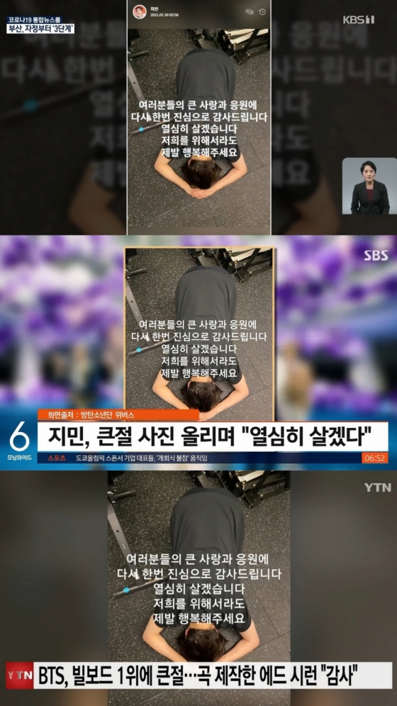이후 한국 대표 공영방송 KBS를 비롯해 SBS, YTN, 연합 뉴스 등의 국내 언론은 빌보드 '핫 100' 1위 소식을 전하며 지민의 감사 메시지와 큰절 사진을 대대적으로 보도했다.
