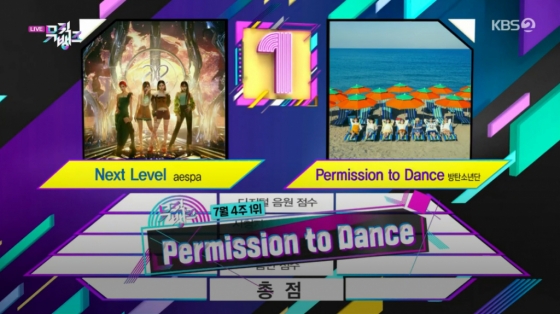 이날 '뮤직뱅크' 1위 후보로는 에스파 'Next Level'과 방탄소년단 'Permission To Dance'가 올랐다.