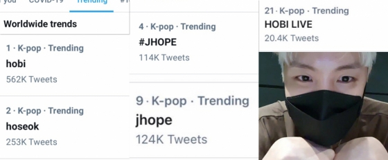 이날 제이홉의 브이라이브는 전 세계적으로 뜨거운 관심을 모았다. 트위터 월드 와이드 트렌딩 됐으며 일본 트위플에도 랭크됐다.