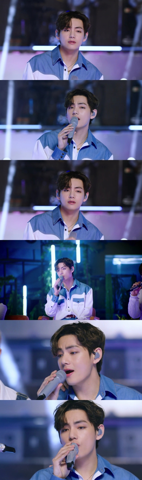 뷔는 '음색 천재'라는 수식어를 증명하듯 무게감이 있으면서도 답답하지 않으며, 풍부하고 섬세한 보컬에 뷔가 가진 특유의 감성까지 더해져 집중도를 높였다. 방탄소년단 멤버 중 가장 음역대가 넓은 것으로 알려진 뷔는 저음과 고음, 진성과 가성을 자유롭게 넘나드는 다이나믹한 애드립까지 완벽하게 소화하며 명품 보컬을 유감없이 발휘, '믿고 듣는 라이브' 무대를 펼쳤다.