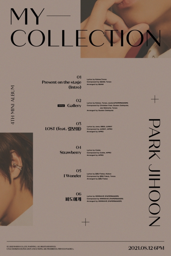 박지훈은 30일 0시 공식 SNS를 통해 네 번째 미니앨범 'My Collection(마이 컬렉션)'의 트랙리스트 이미지를 게재했다.