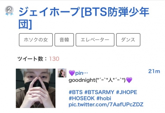 이날 제이홉의 브이라이브는 전 세계적으로 뜨거운 관심을 모았다. 트위터 월드 와이드 트렌딩 됐으며 일본 트위플에도 랭크됐다.