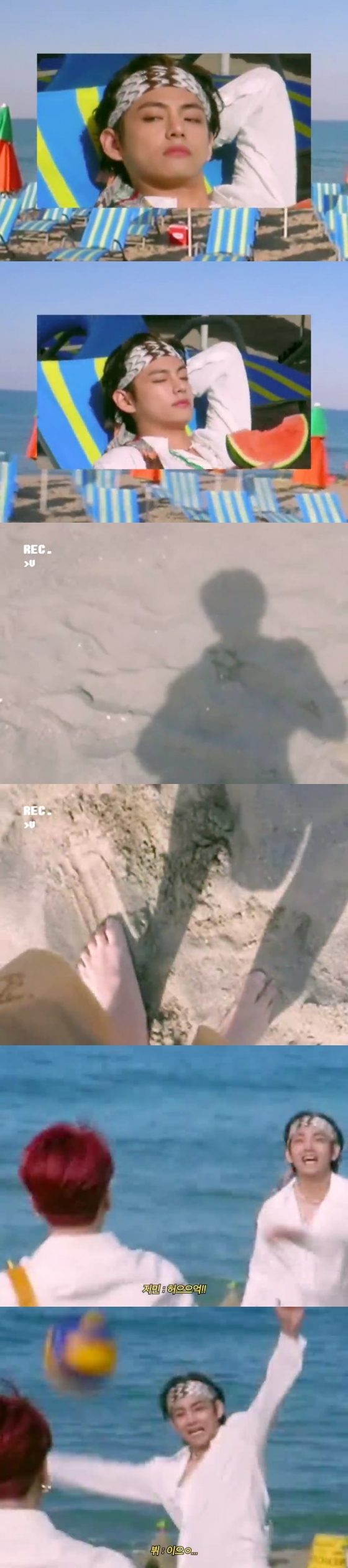뷔는 해변의 선베드에 기대 앉아 포즈를 취하며 매 초마다 다른 분위기의 표정 연기를 선보여 집중도를 높였다. 또 뷔는 모래사장 위에 서 있는 자신의 그림자와 모래를 가지고 노는 모습을 카메라에 담았고, 왠지 모를 뭉클함이 느껴지는 영상으로 뜨거운 사랑을 받았다.