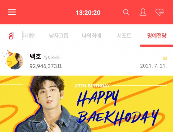 백호는 지난 7월 21일 생일에 7월생 아이돌 중 가장 높은 9294만 6373표를 받고 1위를 차지하며 이달의 기적으로 등극했다. 백호는 뉴이스트 팬덤 러브의 열띤 투표 덕분에 생일날 '최애돌' 제183대 기부요정에 오르기도 했다.