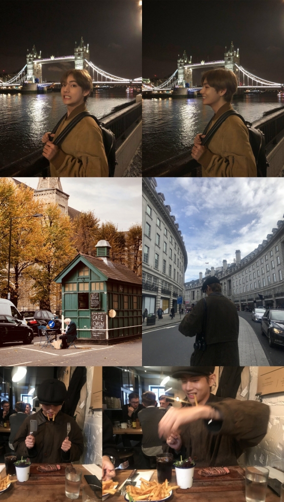 뷔는 해외투어 중에도 세계 곳곳의 아름다운 경치와 인상 깊었던 장소를 사진을 찍어서 팬들에게 공유해 팬들을 감동시켰다. 뷔는 런던의 템즈 강변, 식당, 거리의 모습을 찍은 16장의 사진을 팬들과 공유한 바 있다.