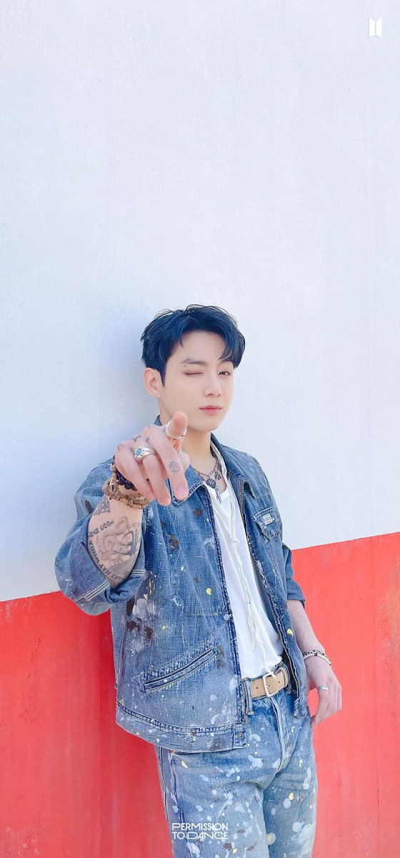 정국은 극강의 핫 보디로 섹시함을 발산하며 설렘 달달한 눈빛과 미소로 치명적 반전 매력을 자아냈다. 청청 패션을 입은 정국은 쿨한 제스처, 윙크 그리고 눈빛으로 청량한 매력을 한껏 발산했다.