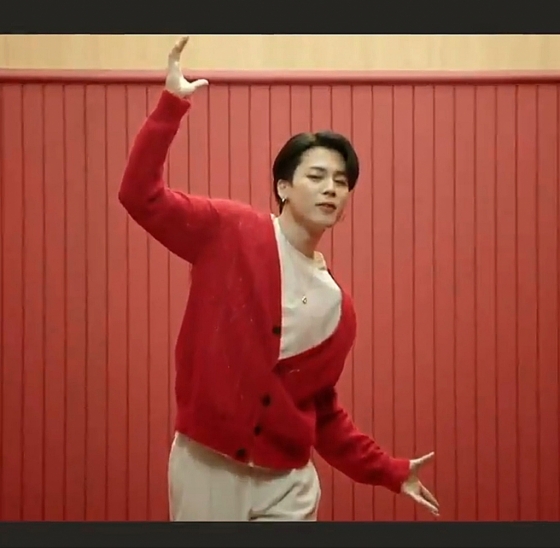 지민은 강렬한 레드 카디건에 크림색 슬랙스를 입고 'butter' 배경음악에 맞춰 몸을 숙였다가 들어 올리는 동시에 교차시킨 양팔을 펼치는 동작으로 이번 행사의 슬로건 '겟 레디 투 언폴드'(펼칠 준비를 하라)를 완벽하게 표현해 놀라움을 안겼다.