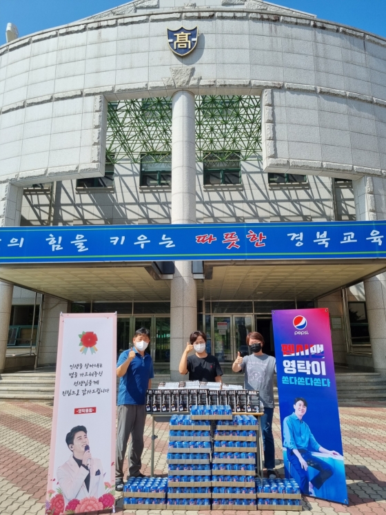 영탁 공식 팬카페 '영탁이 딱이야'는 최근 영탁의 고향인 안동 지역 코로나 19 의료진과 저소득층 시민들, 교육 관계자, 학생들에게 4000여 캔의 음료를 전달, 응원했다.