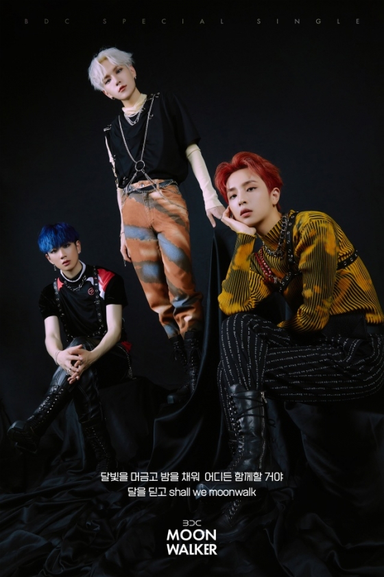 브랜뉴뮤직 3인조 보이그룹 BDC(김시훈 홍성준 윤정환)가 새 싱글 'MOON WALKER'(문워커) 2번째 리릭 티저 포토를 공개했다.