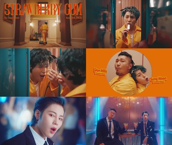 화려한 색감이 돋보이는 'Strawberry Gum (Feat. Don Mills)' 뮤비 속 하성운은 노란색의 점프 수트부터 화려한 셔츠와 가죽바지, 넥타이까지 단정하게 매치한 수트까지 다양한 스타일의 의상으로 등장하며 시시각각 달라지는 팔색조 매력을 자랑한다. 말 그대로 '보는 재미'가 넘치는 뮤비다.