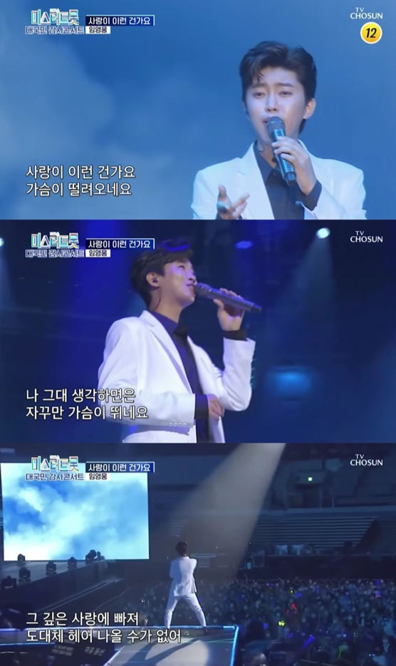 지난 2020년 8월 28일 임영웅 공식 유튜브 채널에 공개된 미스터트롯 콘서트 '사랑이 이런 건가요' 무대 영상은 14일 조회 수 800만 뷰를 돌파했다.