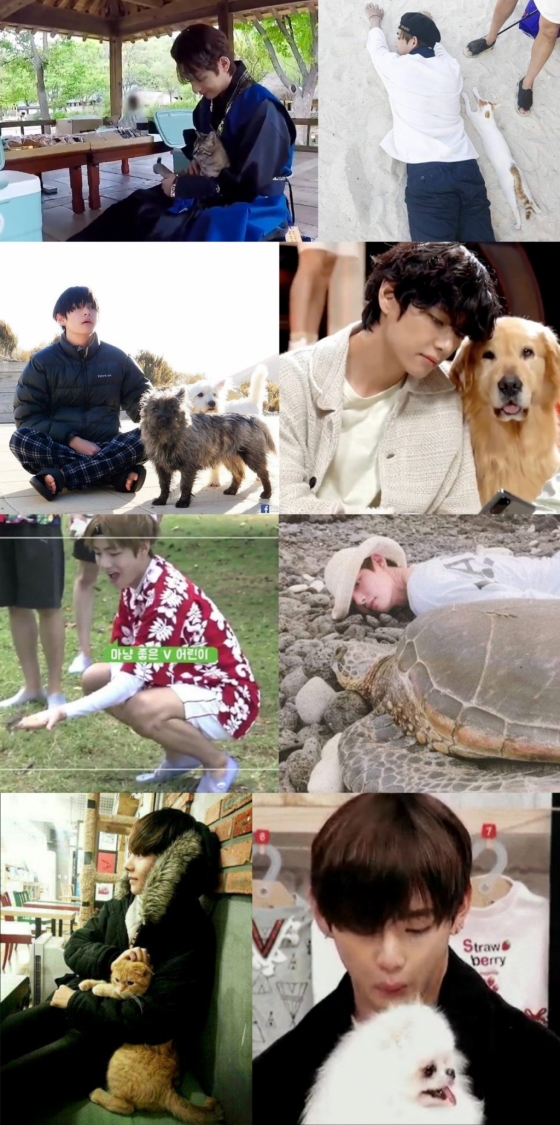 뷔는 데뷔 초부터 동물에 대한 남다른 사랑을 보여왔고 방탄소년단 자체 예능 콘텐츠 등을 통해 동물들과 교감하는 모습이 자주 포착됐다.