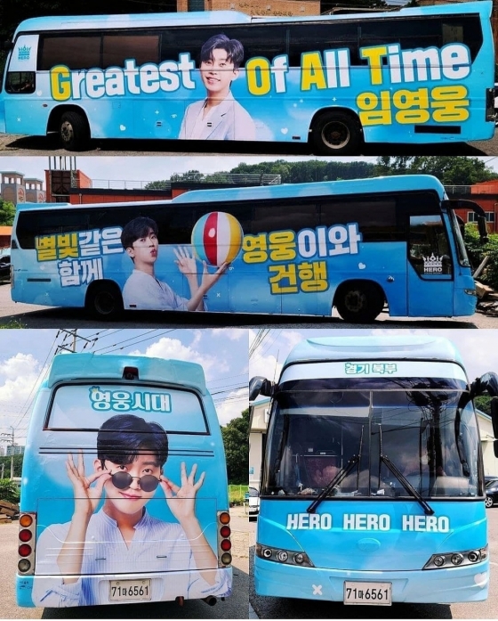 래핑 버스에는 'Greatest Of All Time 임영웅'과 '별빛 같은 영웅이와 함께 건행' 등 문구가 담겼다.