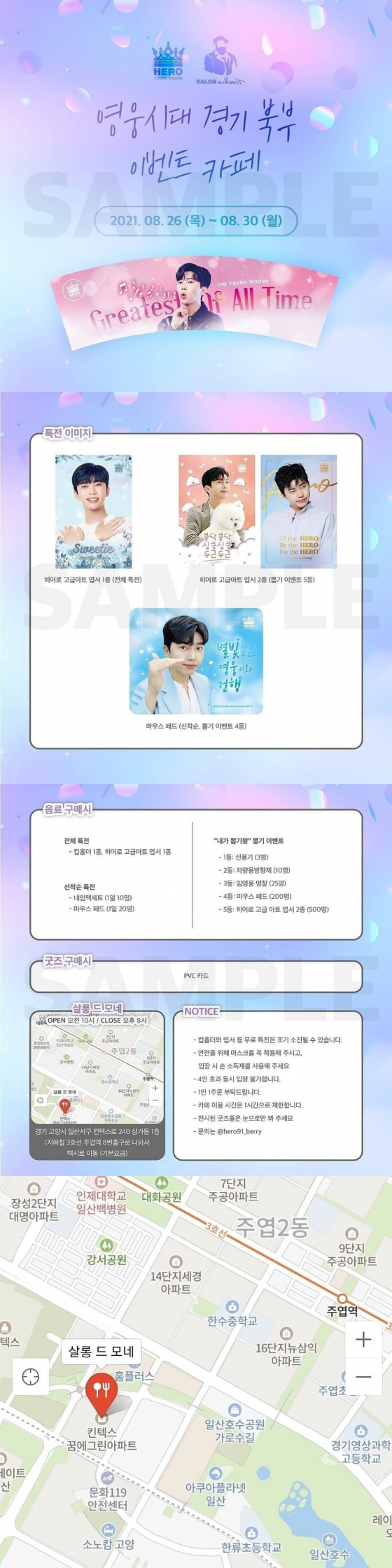 한편 영웅시대 경기북부는 8월 26일부터 8월 30일까지 이벤트 카페도 진행한다. 고양시 일산서구 킨텍스로 240 카페 '살롱 드 모네'에서 오전 10시부터 오후 8시까지 진행되며 컵홀더와 고급아트 엽서 등 방문객 특전도 있다.