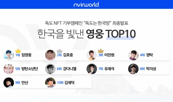 지난 15일 종료된 '독도 NFT 기부 캠페인' 투표에서 최종 2위를 차지한 김호중은 ㈜워너비인터내셔널의 NFT 통합 서비스 플랫폼 엔버월드가 21일 공개한 이범헌 작 독도 NFT 작품 'Dokdo Korea'(대한민국 작품)에 이름을 새겼다.