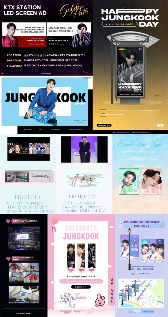팬 계정 'Helianthus'은 8월 27일~9월 26일 서울 지하철 압구정역 B21 구역, ACETIC는 8월 30일~9월 5일 홍대 입구역, 8월 30일~9월 12일 건대 입구역에서 정국의 생일 광고를 송출한다고 트위터를 통해 전했다.