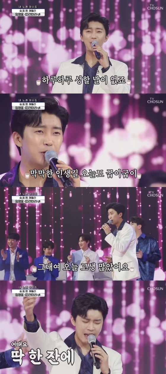 '따라따라'는 "따라따라 따라따라 꽉채워서 한잔따라"와 "딱 한잔만 짠하고 갑시다"란 가사가 인상적인 무대다. 임영웅이 힘든 세상에 건네는 찐한 위로가 신나면서도 가슴 뭉클하게 하는 무대다.