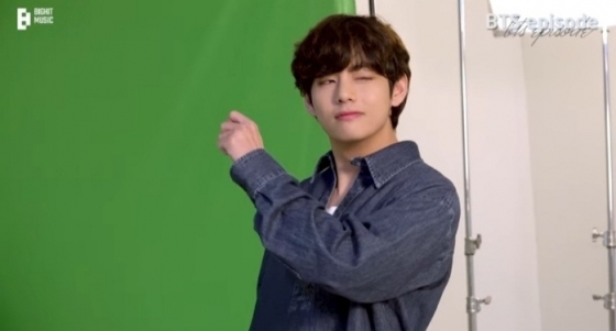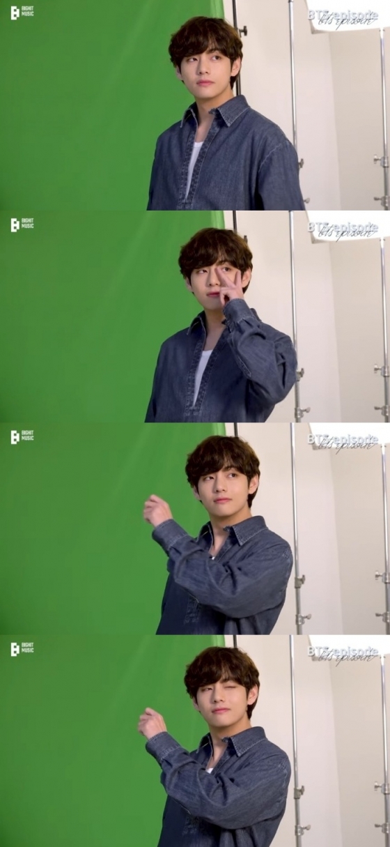 이어지는 개인모션 촬영에서 뷔는 자신의 시그니처 포즈인 눈에 브이를 하거나 윙크를 하며다양한 포즈를 취하며 시선을 사로잡았다.
