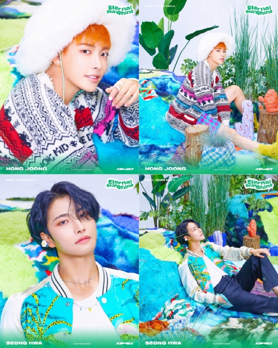 먼저 정오에 공개된 '이터널 선샤인'(Eternal Sunshine) 버전의 홍중은 키치한 패턴의 카디건과 커다란 화이트컬러 모자로 단번에 시선을 사로잡는가 하면, 매번 새로운 헤어컬러를 시도하는 만큼 이번에도 진한 오렌지빛을 단숨에 소화해 눈길을 끌었다. 이어 성화는 색색의 패브릭이 깔린 공간에서 유니크한 패턴으로 포인트를 준 의상과 꽃 모양의 귀걸이가 청량한 매력을 더했다.