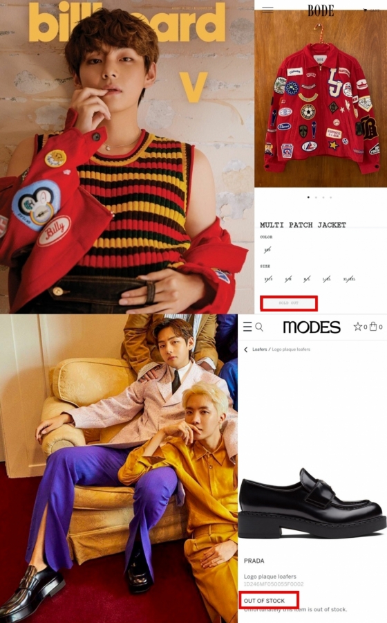 뷔가 착용한 보디의 패치 재킷은 고가임에도 불구하고 공개 후 불과 20여분 만에 전 세계 각국의 판매처에서 품절되었음을 알려왔다. 또한 단체 사진에서 뷔가 신은 프라다(PRADA)의 로퍼 역시 품절대열에 합류했다.
